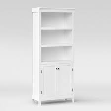 Read reviews and buy 72 carson 5 shelf bookcase with doors threshold 153. Add some functional style to your space with this baxter 5 shelf bookcase with doors. Showcasing a mid century modern design it comes in a high sheen white finish that contrasts beautifully against the warm wood frame.