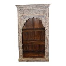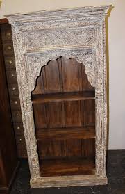 Built from solid pine wood this tall and thin bookcase features a double raised panel design on each side along with vertical planks that make up the backside. Huge rustic arched bookcase intricate carved tall display carved wood book shelf boho farmhouse home decor mogulgallery. A wall anchor kit is included to secure the bookcase to the wall and prevent tipping injuries.