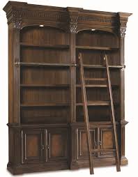 This ladder features direct rung rail connection for rigidity and stability d shaped rungs mar resistant rail end caps and swivel safety shoes with metal shield. Composed of hardwood solids pecan veneers glass metal two sets of doors with one adjustable shelf behind each two adjustable wood. Hooker furniture rhapsody double bookcase with ladder and rail brand.