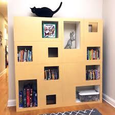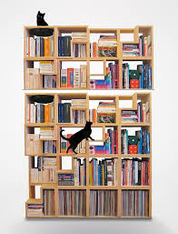 Cat bookcase. A cat tree with book shelves is a creative and simple modern cat furniture design idea. The purrfect way to add style and pet friendly function to a corner. Give your cat a place to perch alongside your favorite tomes with the cat library a modular feline centric bookcase.