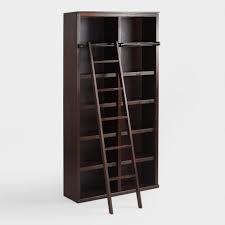 Espresso bookcase with doors. Contemporary and modern contemporary free standing ladder bookcase with open shelving 4 tier shelves at various depths are strong enough to hold books toys collectables space saving design and stylish storage solution makes it perfect for a home office livingroom bedroom or in a hallway smooth dark. Particle board laminate and mdf style. Six shelves provide plenty of space to store all your books family pictures and decorative items.