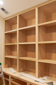 How to build bookcases. Diy bookshelves are an easy project and you can build a bookcase yourself for a lot less than you can buy one. You can build it and then slide it into place and mount it. This is the first step in building a full wall bookcase.