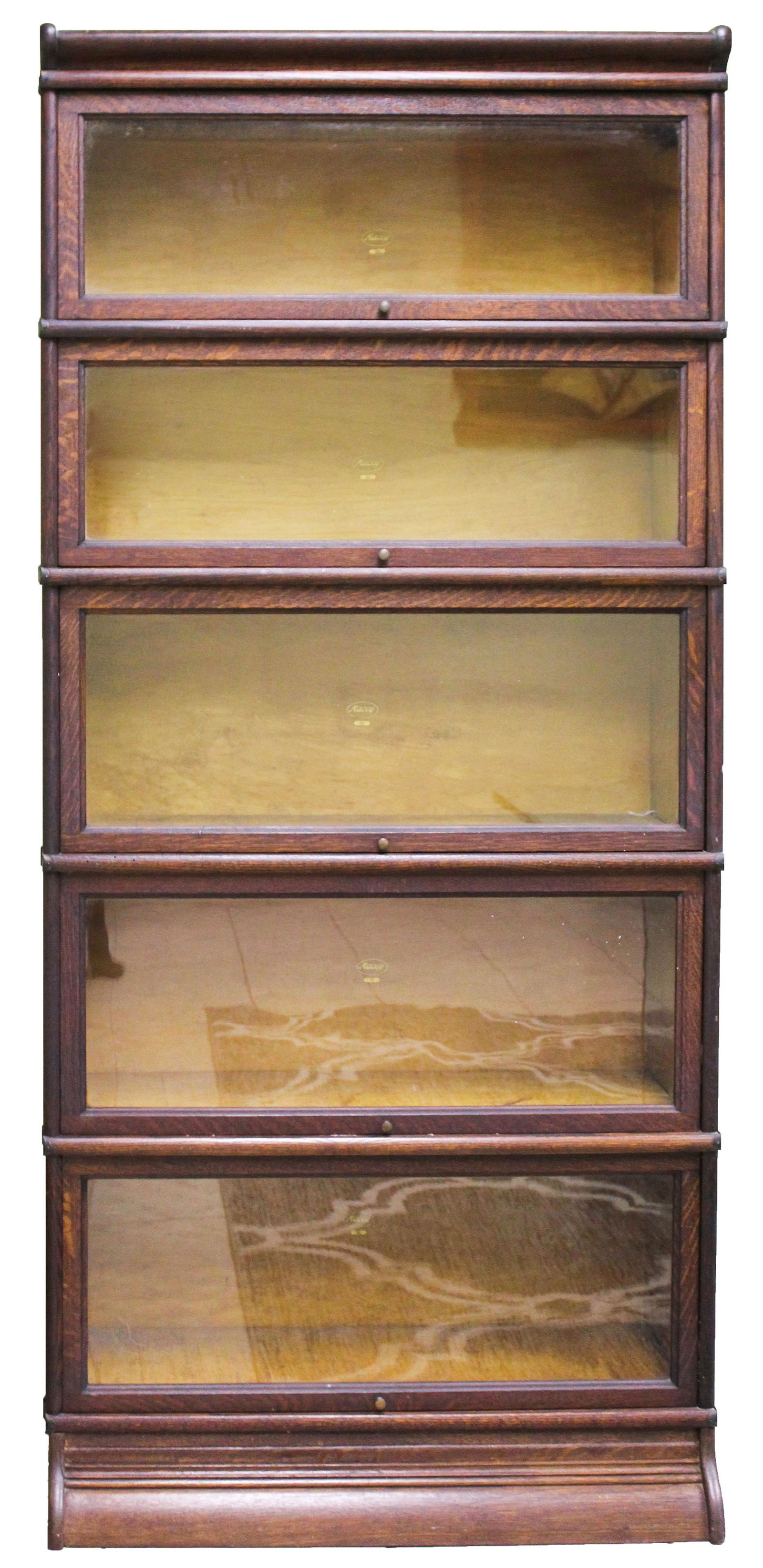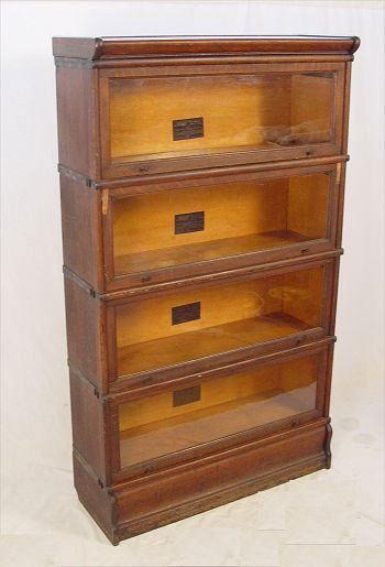 View it on ebay. With base and cap one leaded panel metal band paper label. Your bookcase dates from about 1906.