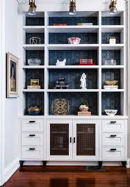 Wallpaper on back of bookcase design photos ideas and inspiration. I did this on both the large bookshelves and the small ones i just moved into our bedroom so the pics are of both. Here is a quick how to put wallpaper of any kind not just grass cloth on the back of a bookshelf.