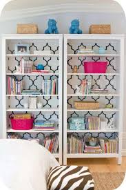Wallpaper bookcase back. Anyhow let s get back on track talking about this week s challenge. Fist empty off the shelves and give yourself enough space to be able to lay the shelves down flat. Again if you have permanent shelves cut the pieces in sections to fit between the shelves.